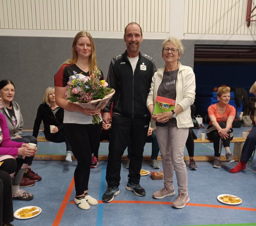 Am 25.03.26 wurde Petra Laubenthal in der Gruppe standesgemäß verabschiedet. Im Rahmen einer kleinen Feierstunde nach dem eigentlichen Training überreichten die Mitglieder Petra Laubenthal ein Präsent und bedankten sich bei ihr für ihre langjährige Tätigkeit. Diesem Dank schloss sich der 1. Vorsitzende Ralf Schlich an. Gleichzeitig zeigte er sich sehr zufrieden über die Tatsache mit Christina Baron ein „Eigengewächs“ des Vereins gefunden zu haben, das übergangslos die Führung in dieser Abteilung übernimmt. So kann Petra Laubenthal beruhigt in den „Ruhestand“ gehen und sieht ihre langjährige Tätigkeit in guten Händen.